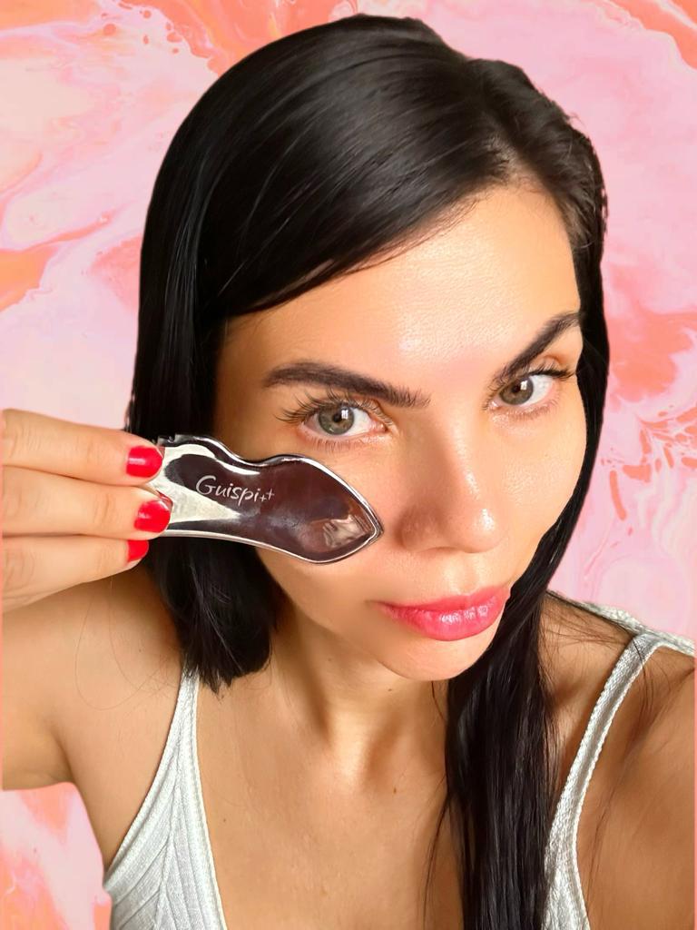 Experience the benefits of Astra Belle for facial tension relief, improved blood circulation, and enhanced lymphatic drainage. Use Guispi to stimulate blood flow, improving skin brightness and aiding collagen production for a firmer, lifted appearance.